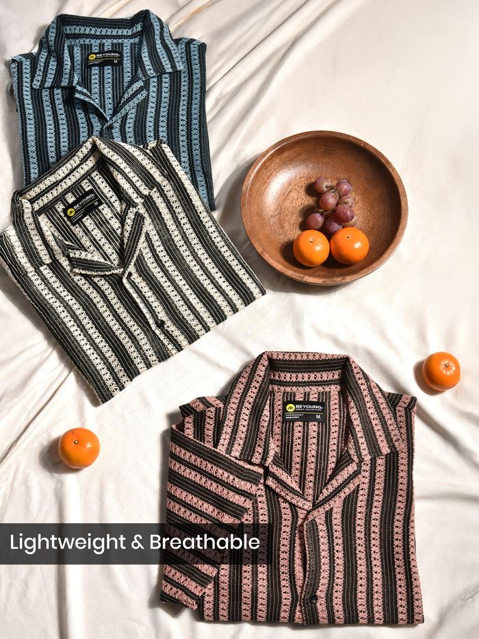 This Stripe Crochet Half-Sleeves Shirt is the perfect resort wear for your next getaway. Made with breathable crochet fabric, it features a stylish cuban collar and a vibrant stripe pattern. You can style it with shorts and jeans for a relaxed, beach-ready look. Whether you're lounging or exploring, this shirt combines comfort and style effortlessly.